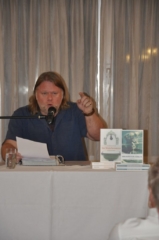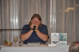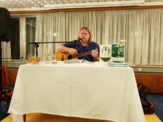 Seine beiden Bücher „Der Watschenmann“ und der „Der Knochentandler“ sind rasante Kriminalgeschichten voller Humor und Schmäh. Sein zweiter Krimi ist eine Hommage an die Kulturstadt Wien und ihre Legenden. Der Zentralfriedhof die zweitgrößte Grabanlage Europas, spielt eine wichtige Rolle. Man sagt, er sei halb so groß wie Zürich, aber doppelt so lustig. Das Publikum unterhielt sich köstlich bei seinen humorvollen Texten, seinen Dialekt-Gedichten voller Lokalkolorit und seinen Mundart-Liedern.